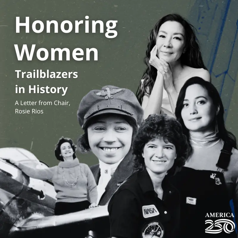 Women’s History Month is a celebration of these milestones and the everyday contributions of women across our nation. As Chair of America250, I am committed to highlighting the unsung stories that have shaped our collective journey. It’s my hope that as we commemorate this significant milestone, we can inspire a new chapter in our history where every American feels empowered to contribute to our nation’s legacy.