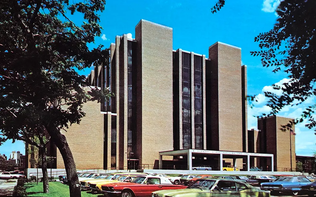Postcard showing the exterior of the Illinois Masonic Medical Center, Chicago. Collections of M. Springate.